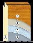 Konstrukcja panela: 1.Pianka poliuretanowa dużej gęstości 2.Arkusz stalowy 3.Warstwa ocynkowana 4.Podkład fosfatowy 5.Warstwa właściwa PCV (okleina) odporna na UV 10 lat gwarancji na korozję. |